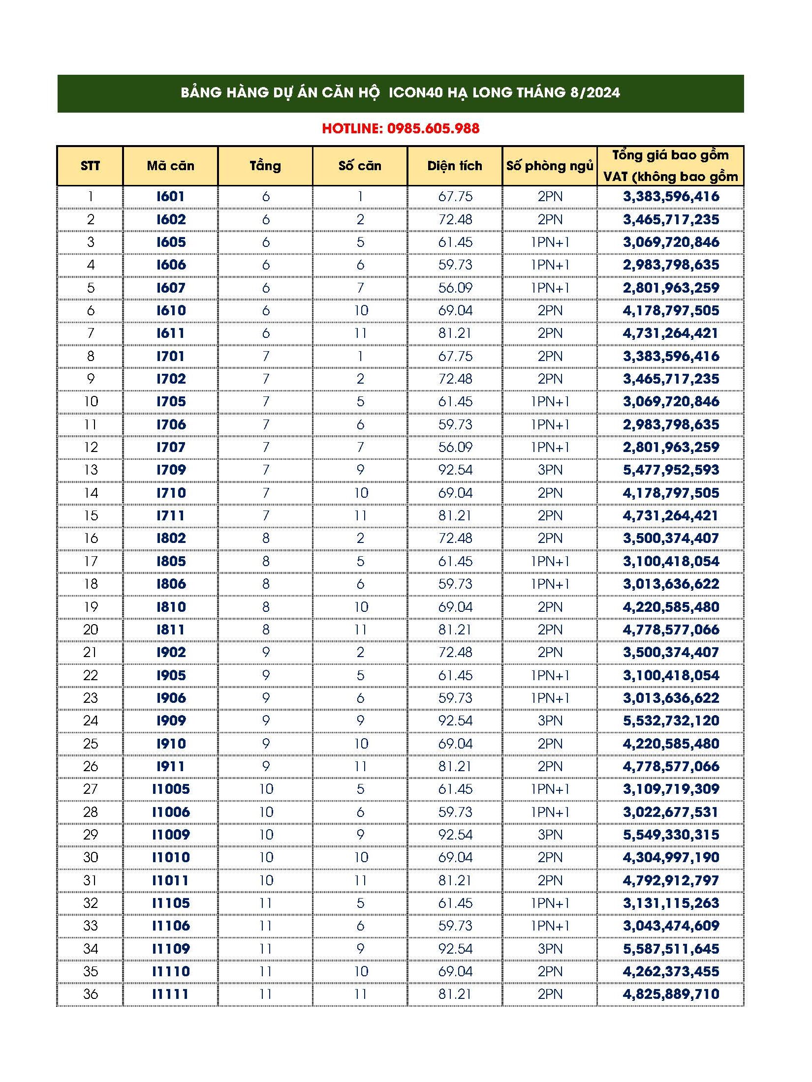 Vào Quý 3/2023, chủ đầu tư Bim Group chính thức mở bán căn hộ Icon40 Hạ Long và công bố bảng giá chính thức 200 căn hộ nghỉ dưỡng mặt Vịnh Hạ Long cùng chính sách chiết khấu vô cùng hấp dẫn dành cho khách hàng đăng ký đặt mua Tháng 1/2023